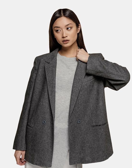 Button-up shirt sleeves and a relaxed silhouette. It’s tailored with drapery, crinkle-texture fabric that’s made from LENZING™ ECOVERO™ Viscose — responsibly sourced wood-based fibers produced through a process that reduces impact on forests, biodiversity and water supply.